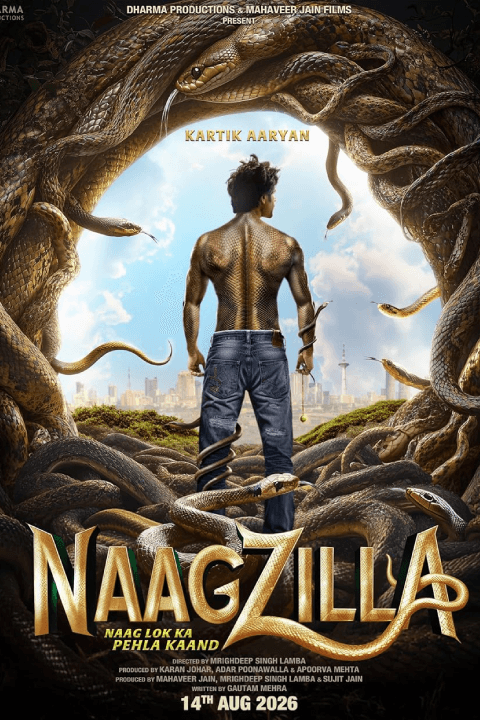 Naagzilla: Naag Lok Ka Pehla Kaand — Release Date: August 14, 2026. Directed by Mrighdeep Singh Lamba and starring Kartik Aaryan in the titular role, the film is produced by Dharma Productions and Mahaveer Jain Films. The film marks the first chapter in a planned supernatural creature-comedy trilogy rooted in Indian mythology and pop fantasy.